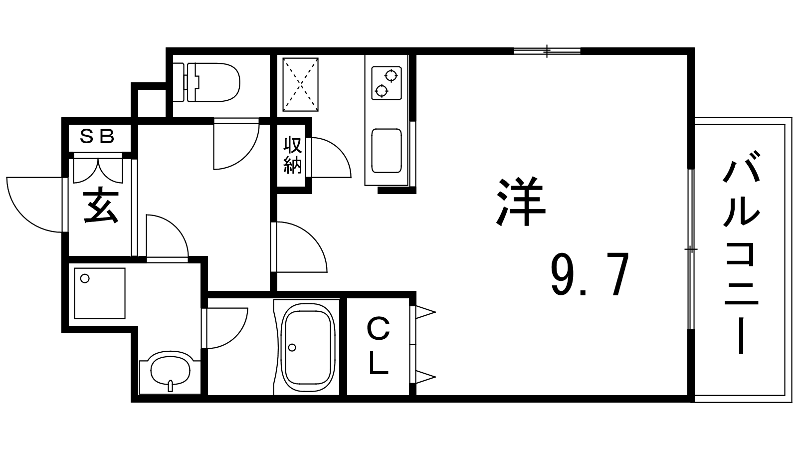 - K2.5帖、洋室9.7帖