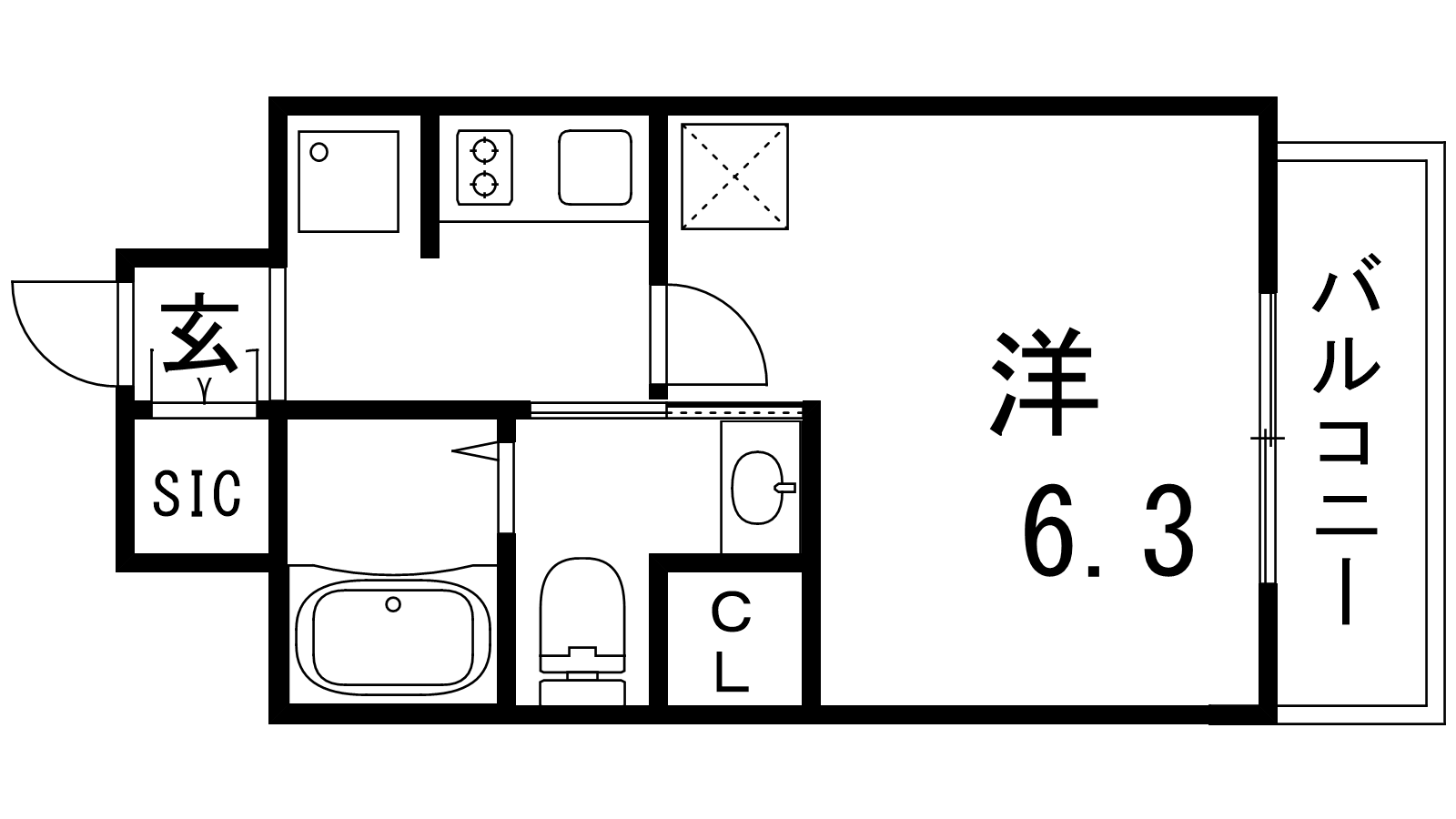 - K2帖、洋室6.3帖