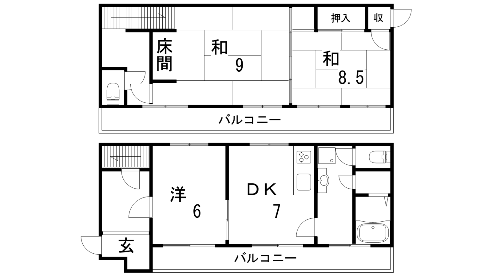- DK7帖、洋室6帖、和室9帖、和室8.5帖