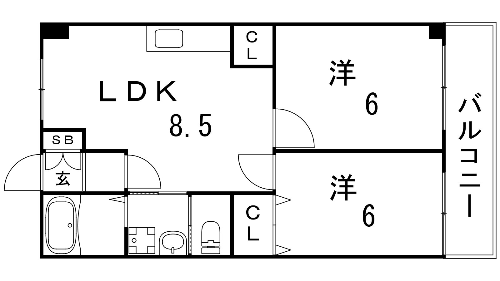 - LDK8.5帖、洋室6帖、洋室6帖