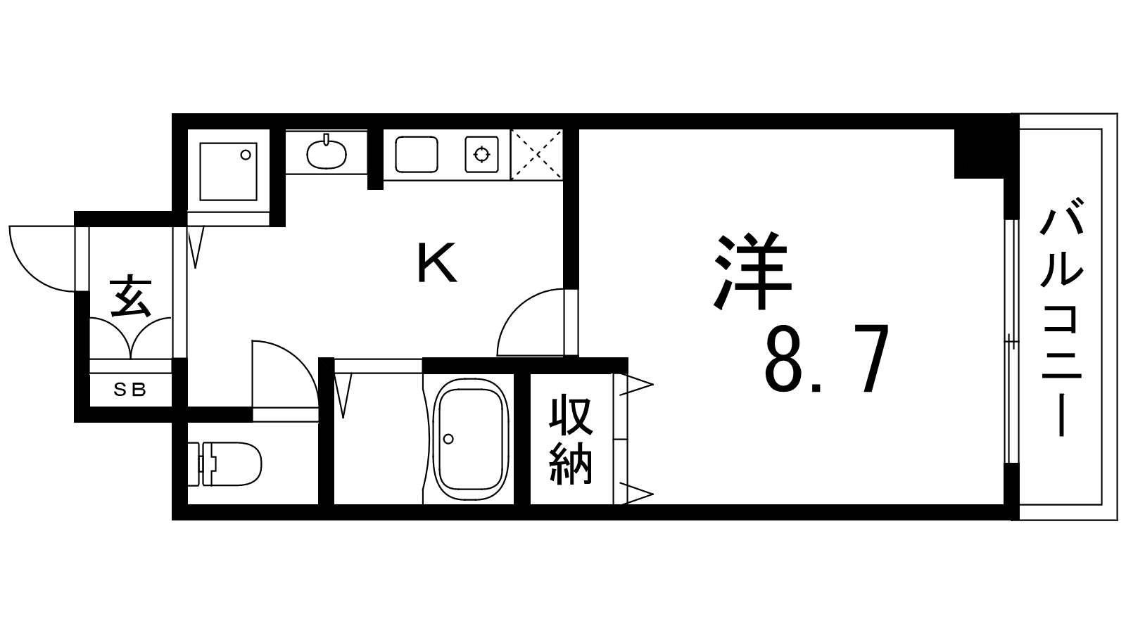- K2.5帖、洋室8.7帖