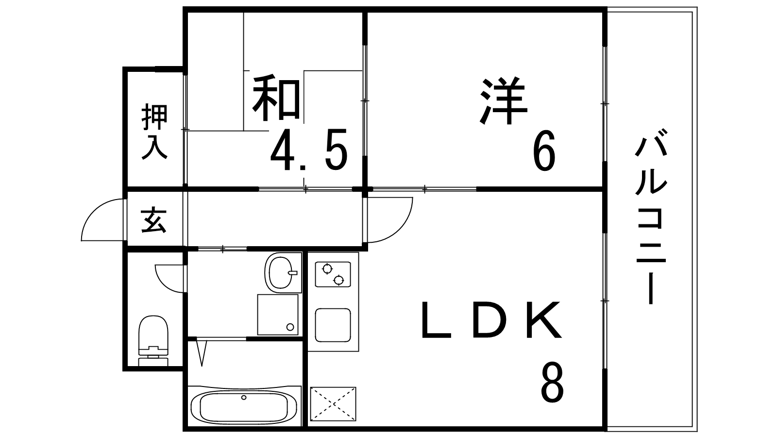 - LDK8帖、洋室6帖、和室4.5帖