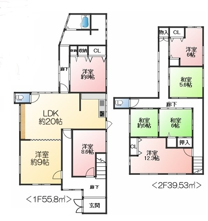 - LDK20帖、洋室9帖、洋室8.6帖、洋室8帖、洋室6帖、和室5.6帖、和室5帖、和室6帖、洋室12.3帖