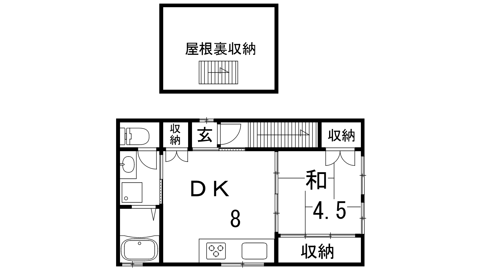 屋根裏収納付き!システムキッチン!追い炊き機能付!ウォシュレットも付いてます!