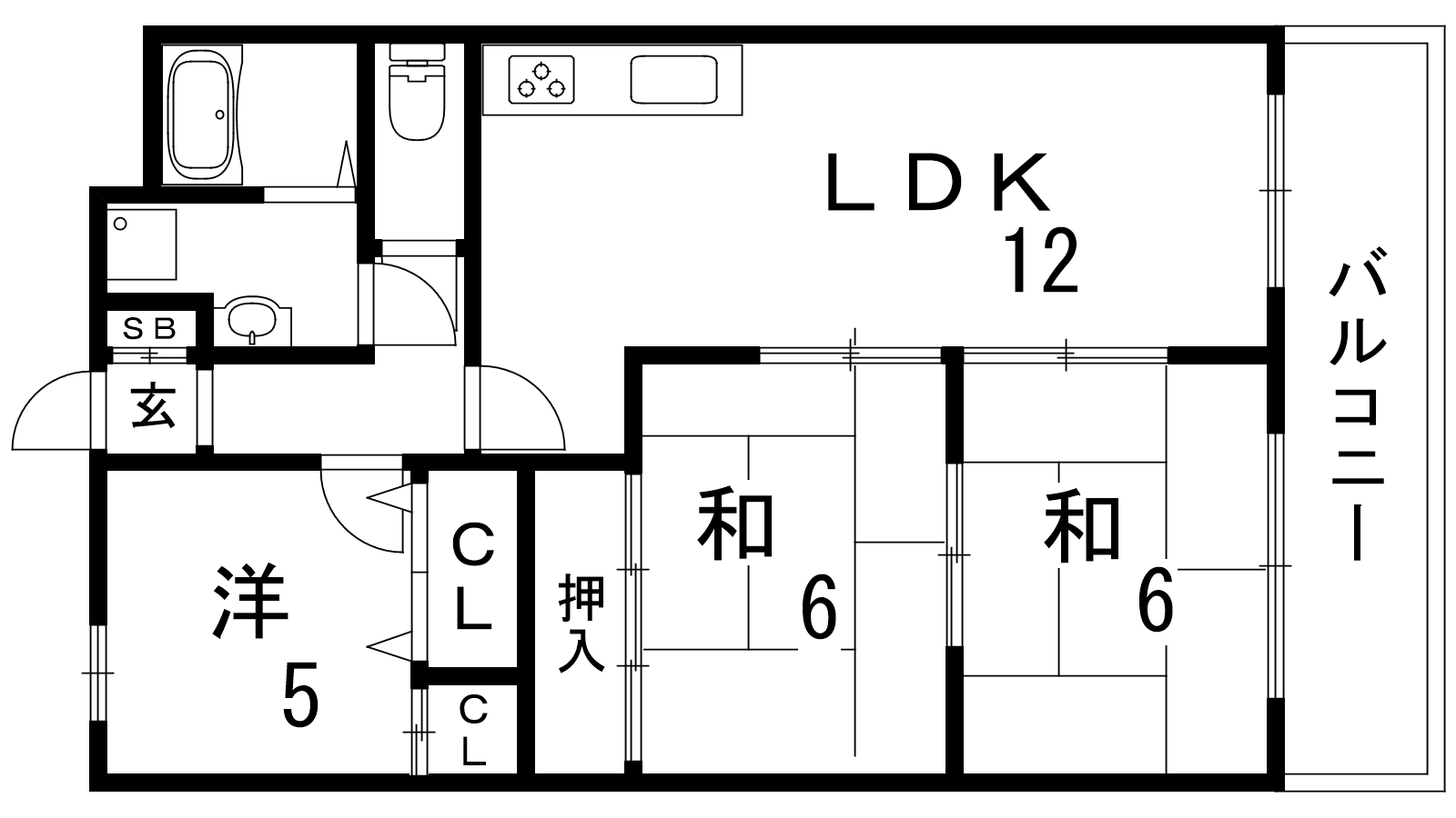 - LDK12帖、洋室5帖、和室6帖、和室6帖