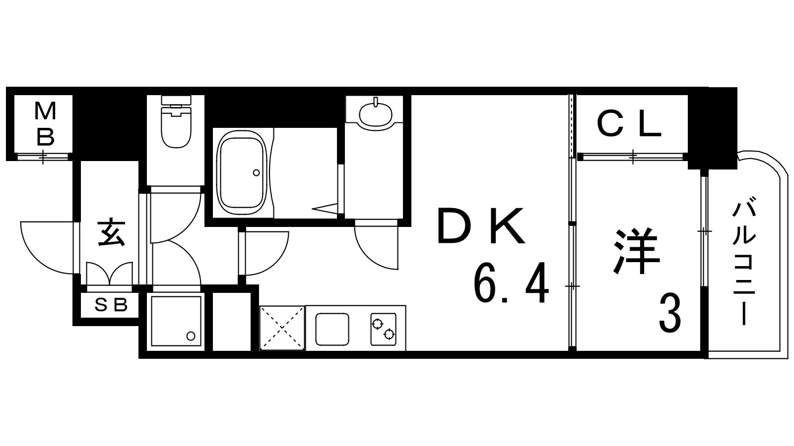 - DK6.4帖、洋室3帖