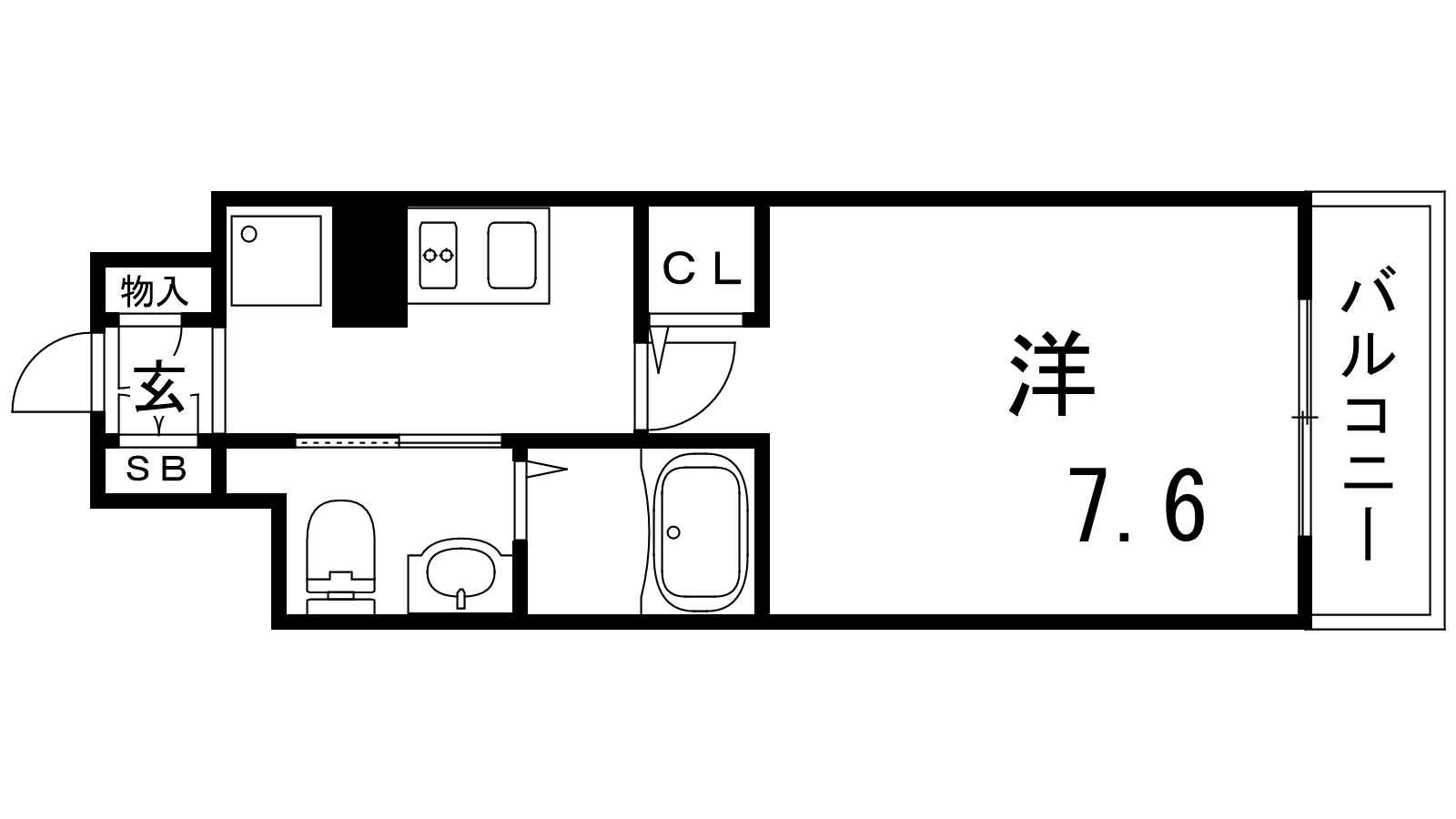 - K2帖、洋室7.6帖