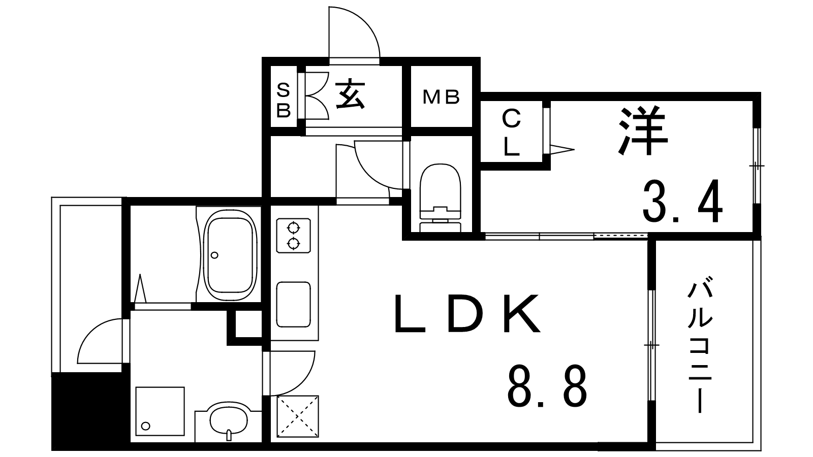 - LDK8.6帖、洋室3.4帖
