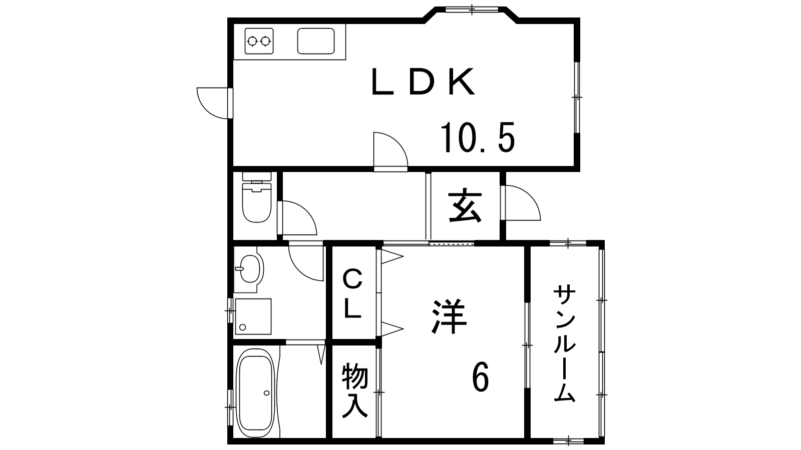 - 洋室6帖、LDK10.5帖