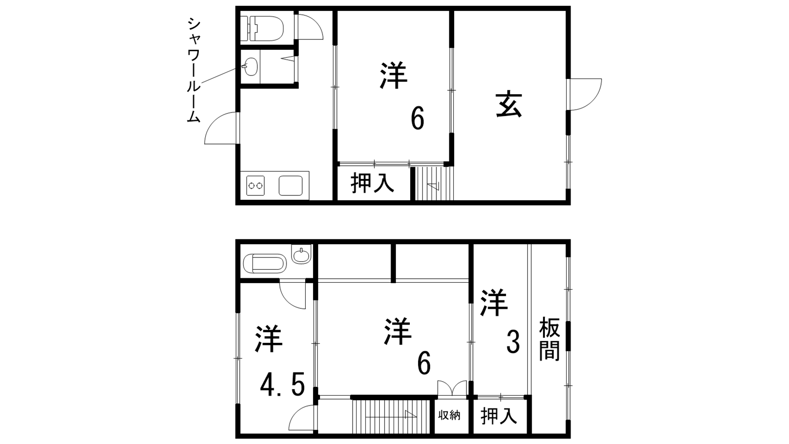 - 洋室6帖、洋室6帖、洋室4.5帖、洋室3帖