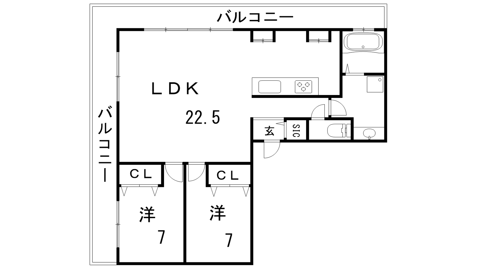 - LDK22.5帖、洋室7帖、洋室7帖