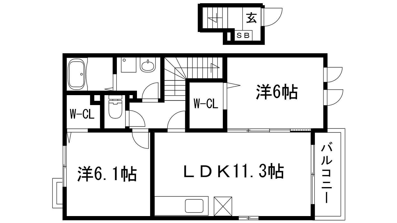 - LDK11.3帖、洋室6.1帖、洋室6帖