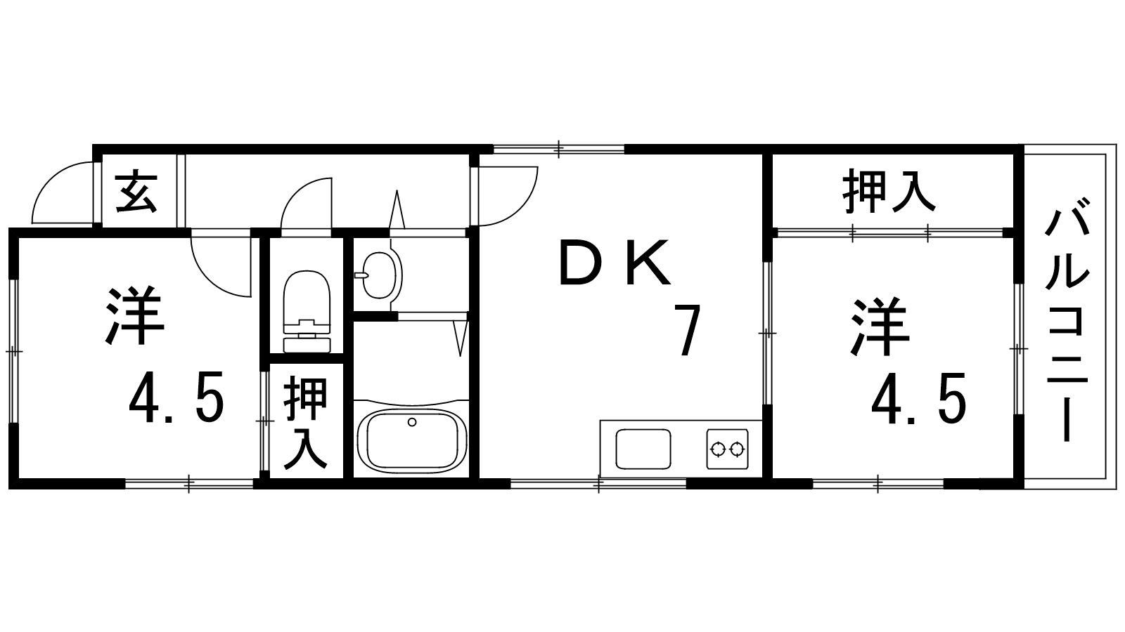- DK7帖、洋室4.5帖、洋室4.5帖