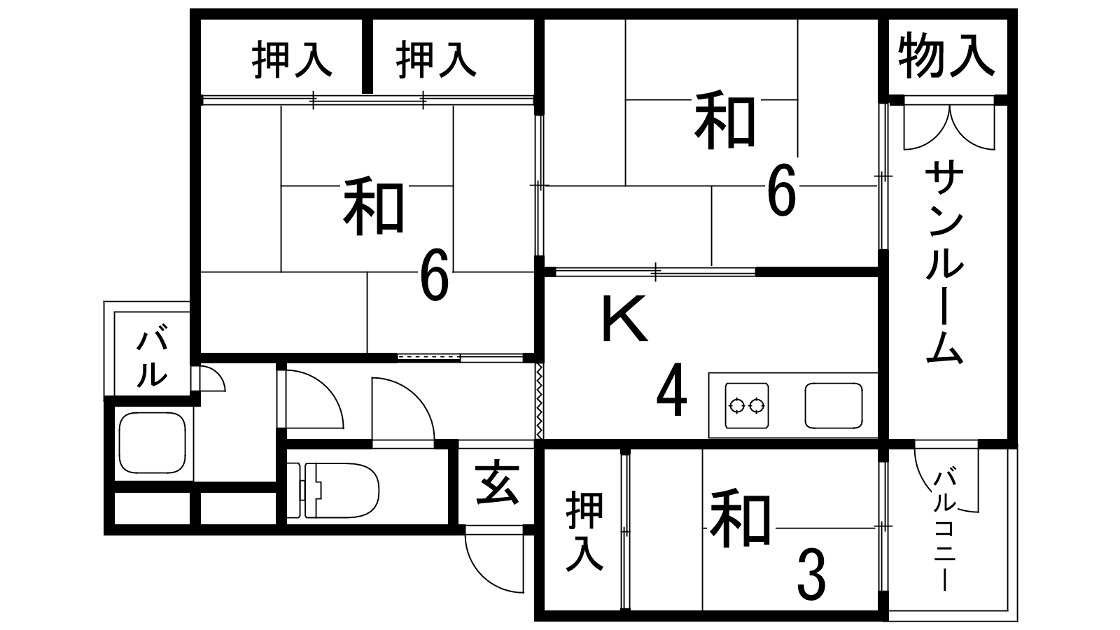 - K4帖、和室6帖、和室6帖、和室3帖