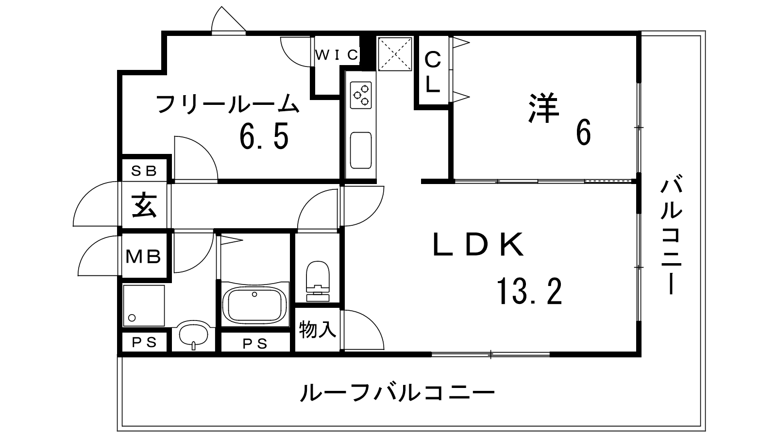 - LDK13.2帖、洋室6帖、洋室6.5帖