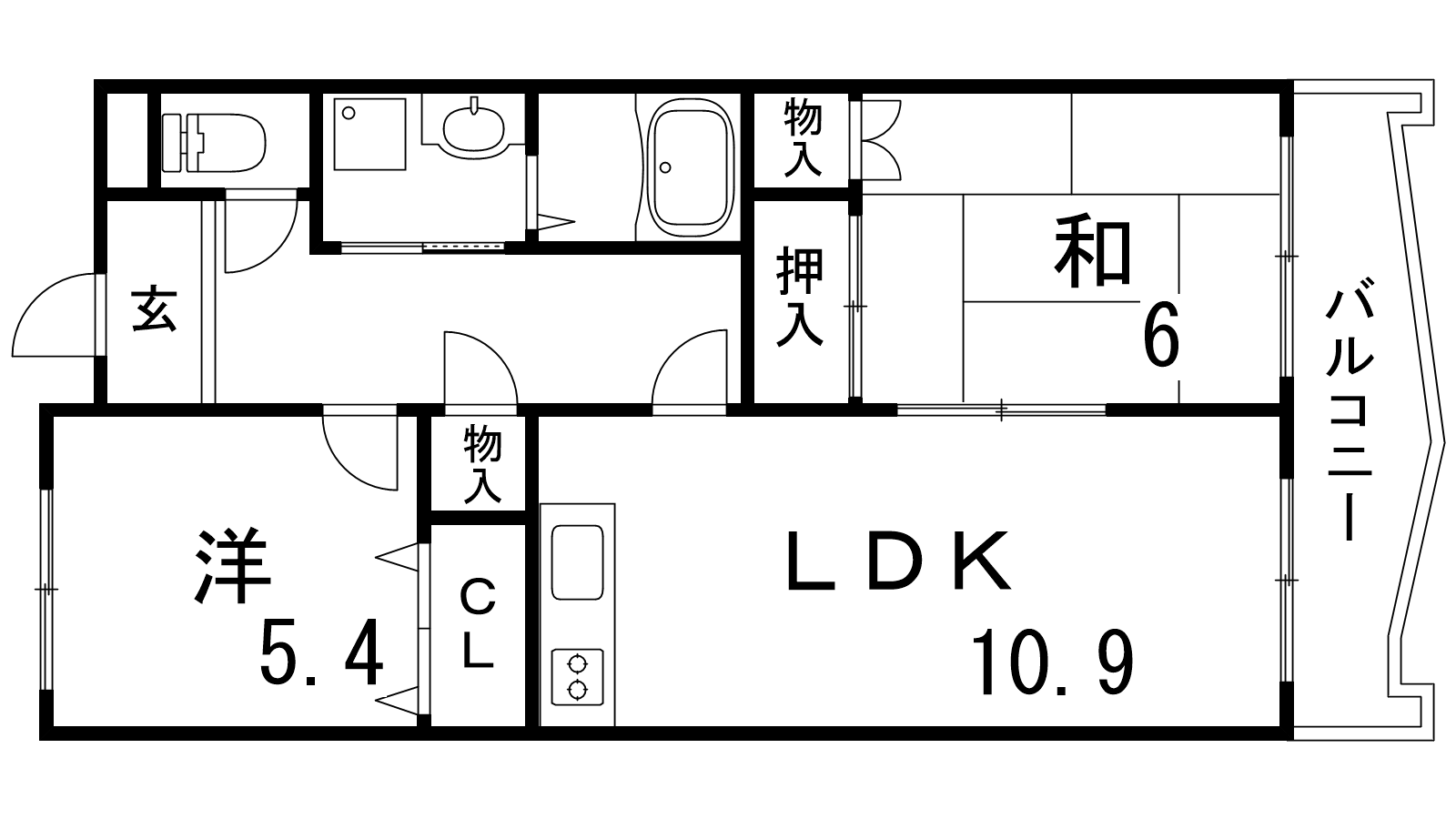 - LDK10.9帖、洋室5.4帖、和室6帖