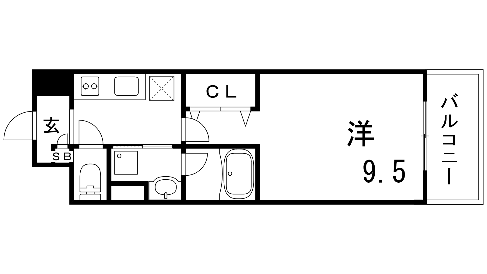 - K2.5帖、洋室9.5帖