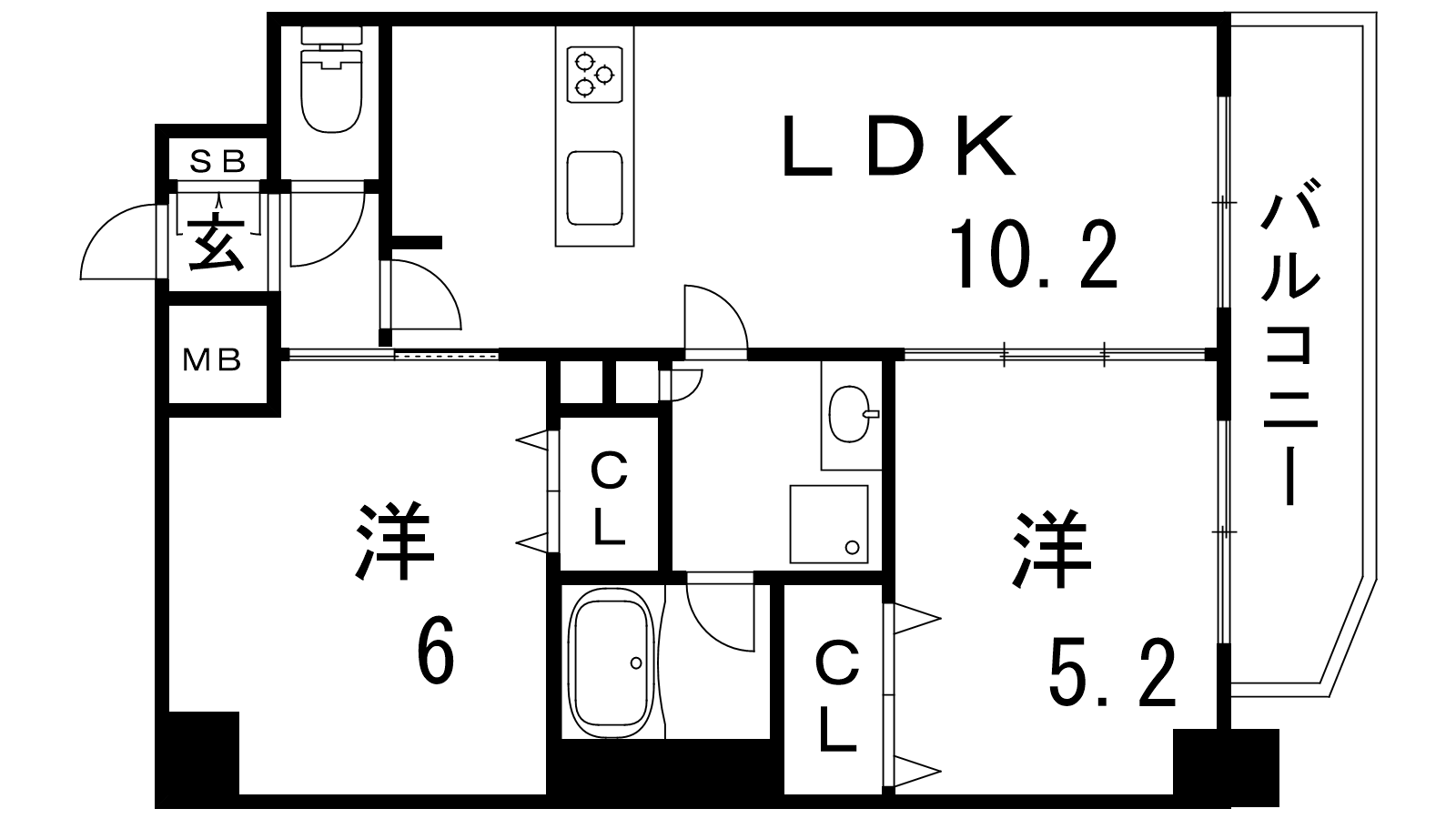 - LDK10.2帖、洋室6帖、洋室5.2帖