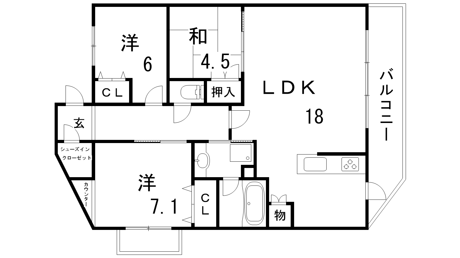 - LDK18帖、洋室7.1帖、洋室6帖、洋室4.5帖