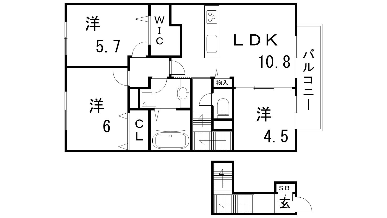 - LDK10.8帖、洋室6帖、洋室5.7帖、洋室4.5帖