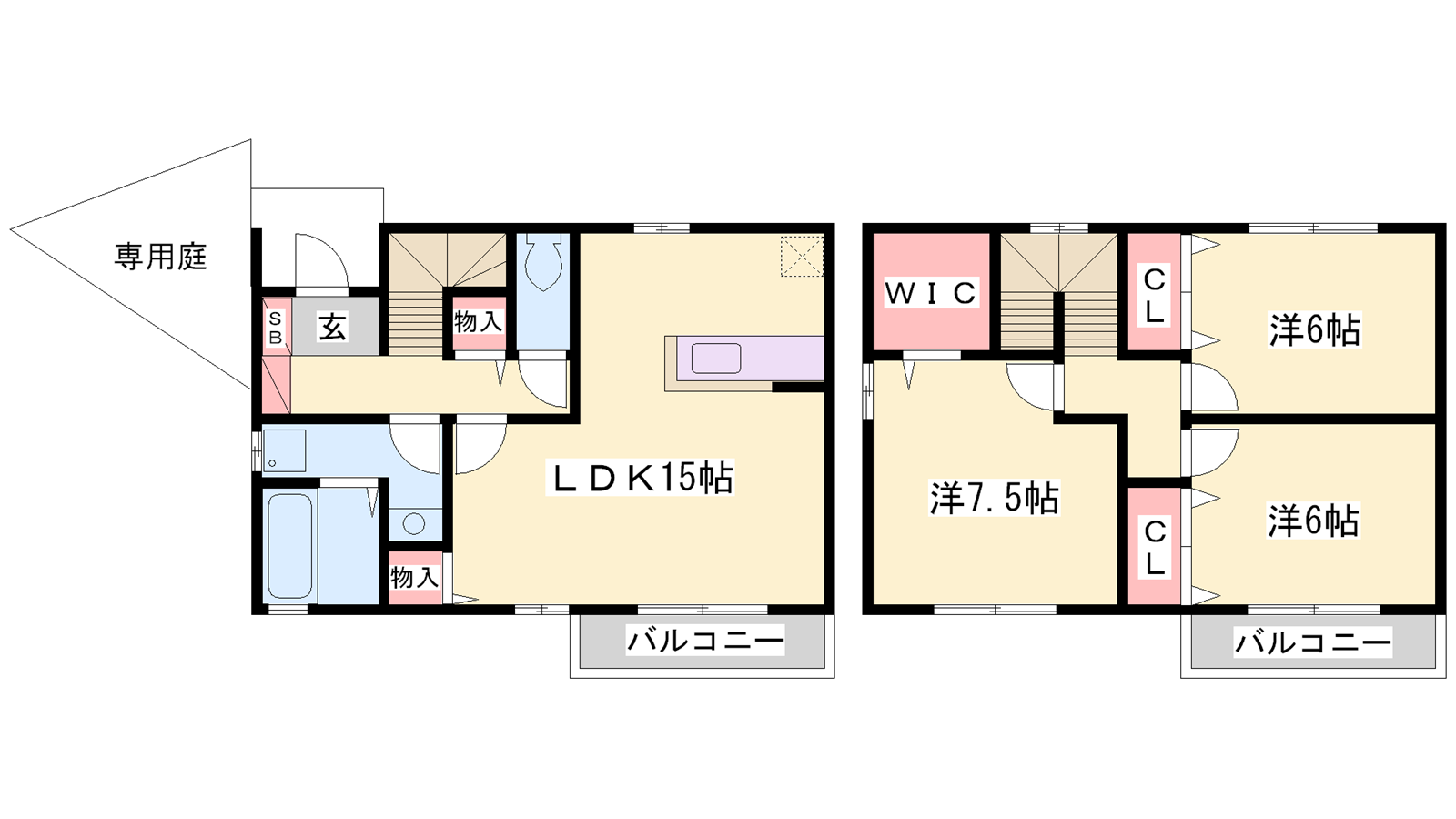 - LDK15帖、洋室6帖、洋室6帖、洋室7.5帖