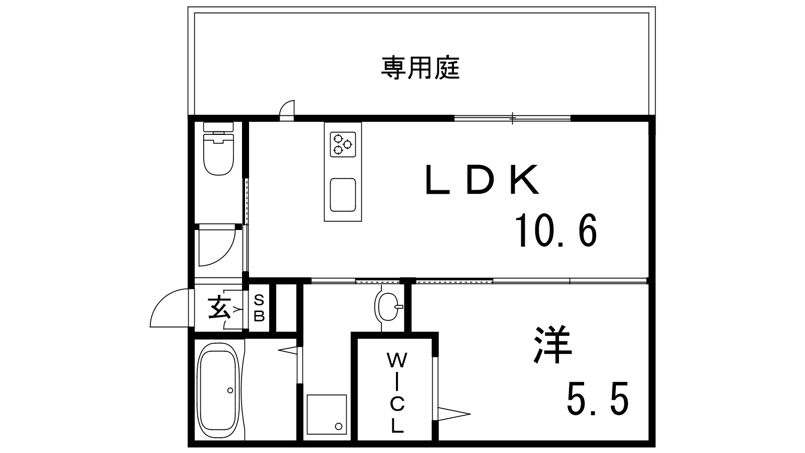 - 洋室5.5帖、LDK10.6帖