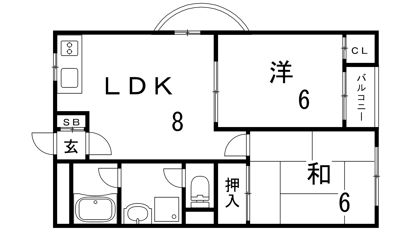 - LDK8帖、洋室6帖、和室6帖