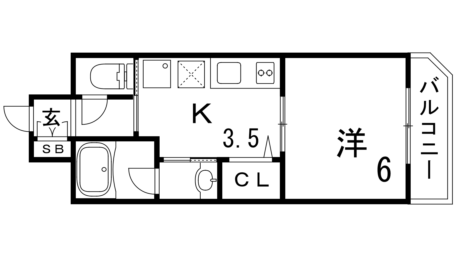 - K3.5帖、洋室6帖