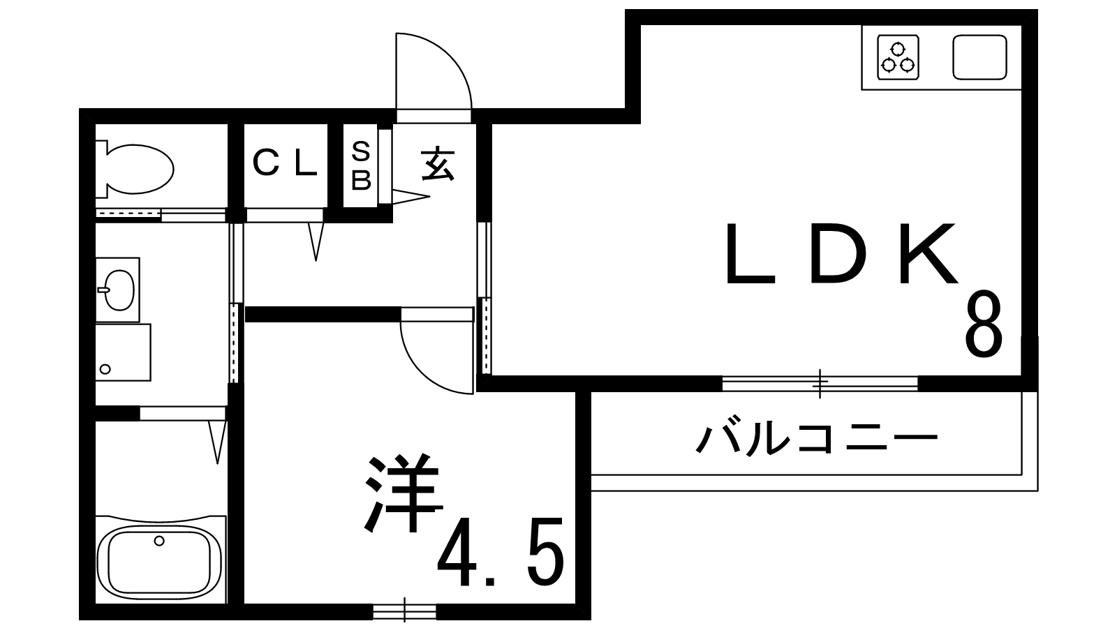 - LDK8帖、洋室4.5帖