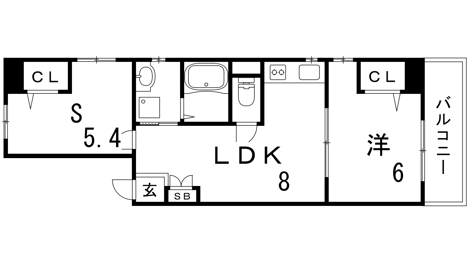 - 洋室6帖、S5.4帖、LDK8帖