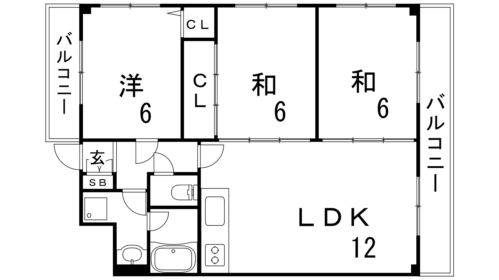 - LDK12帖、洋室6帖、和室6帖、和室6帖