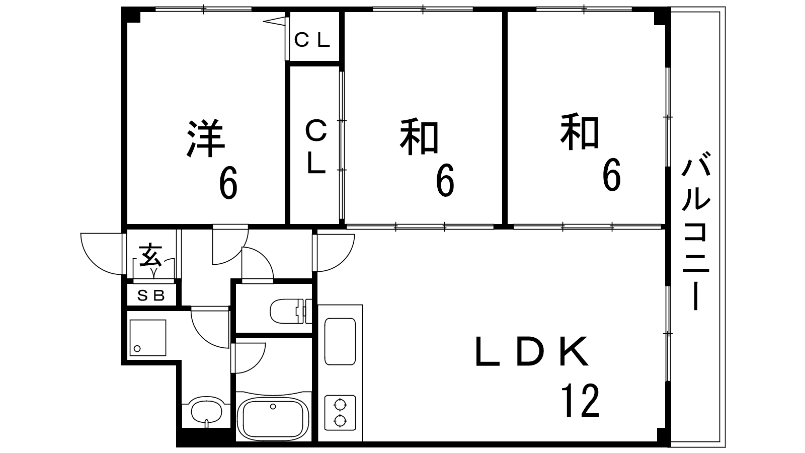 - LDK12帖、洋室6帖、和室6帖、和室6帖