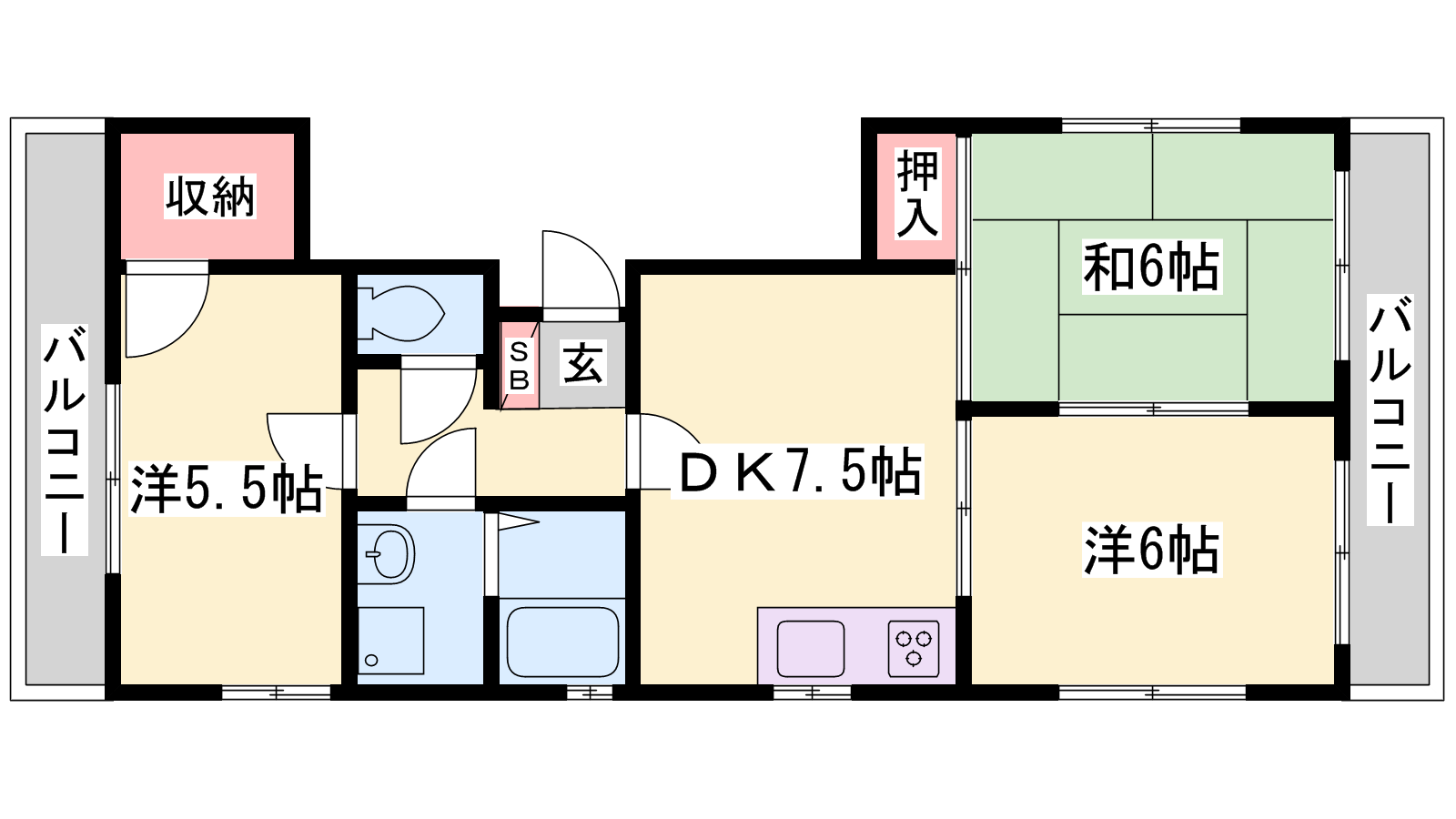 - DK7.5帖、洋室6帖、洋室5.5帖、和室6帖