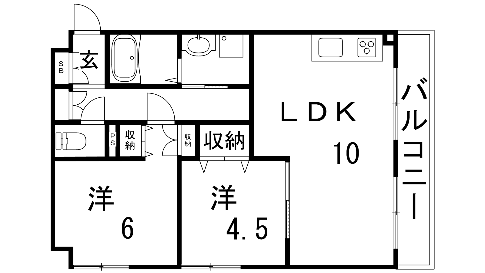 - LDK10帖、洋室6帖、洋室4.5帖