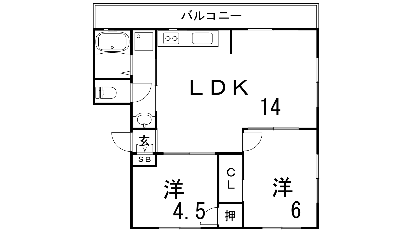 - LDK14帖、洋室6帖、洋室4.5帖