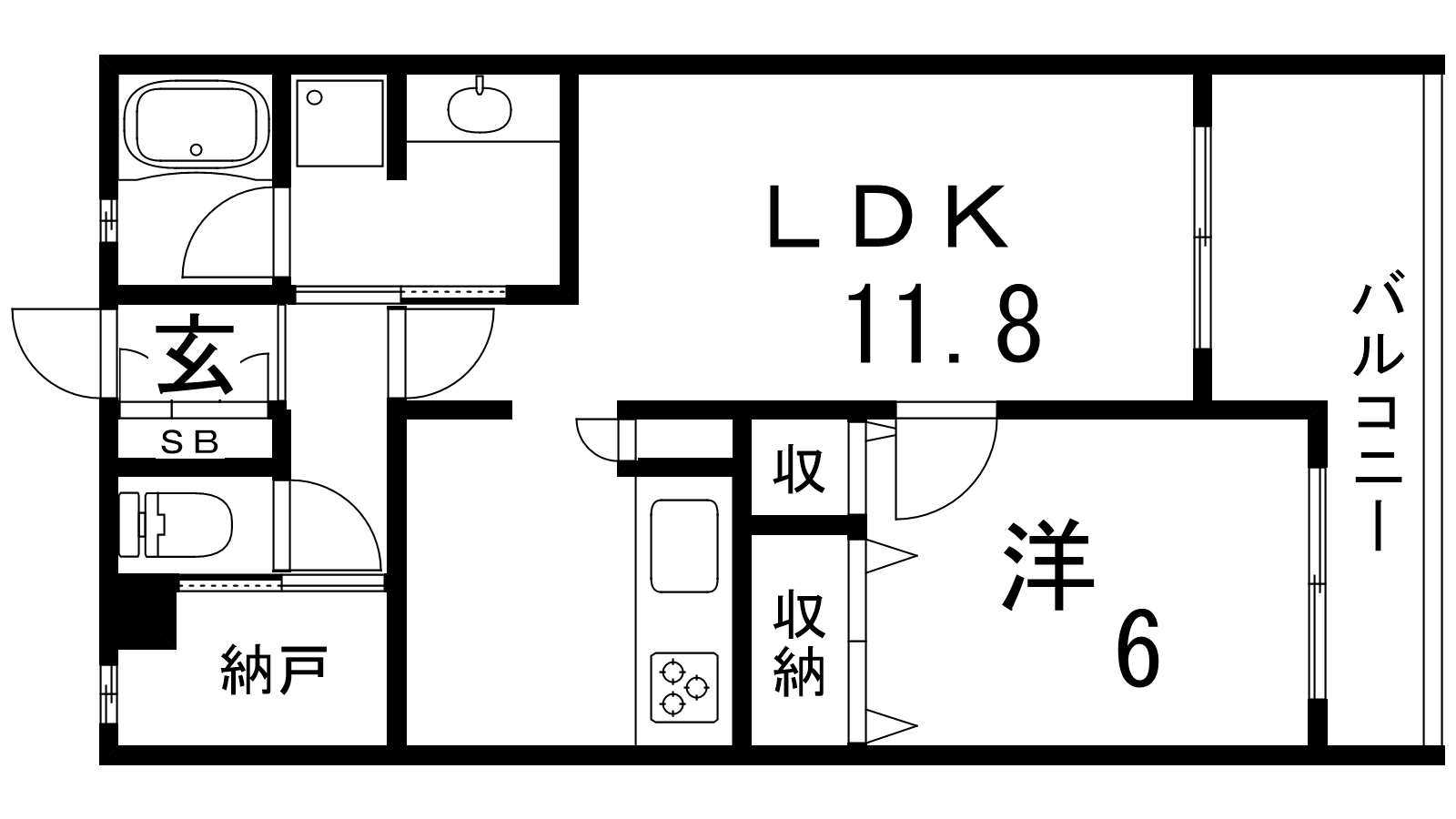 - LDK11.8帖、洋室6帖