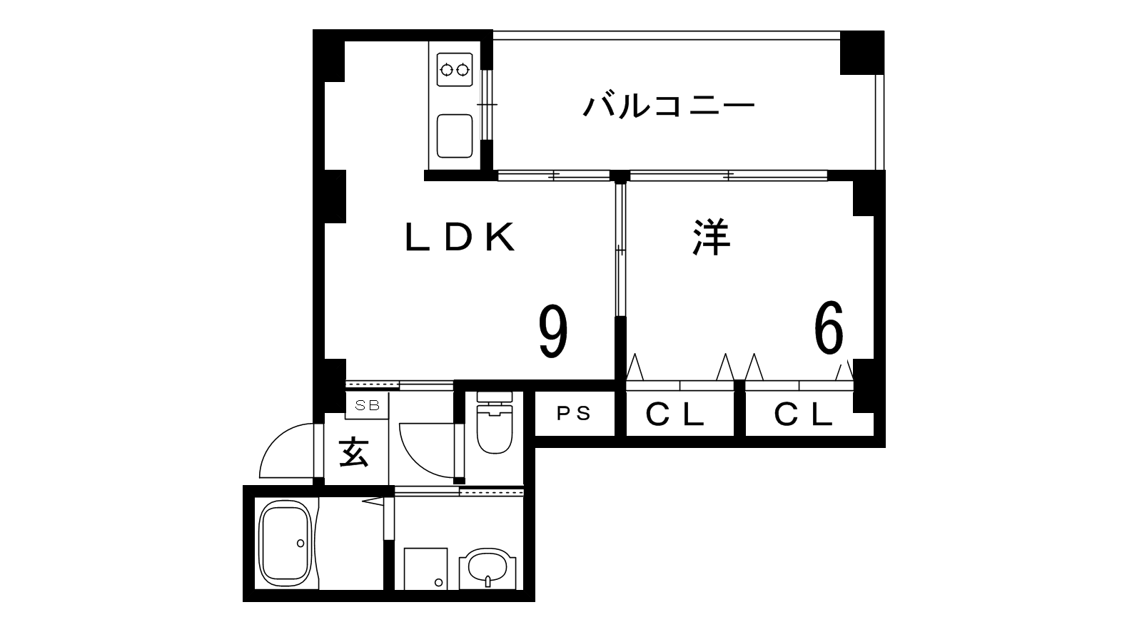 - LDK9帖、洋室6帖