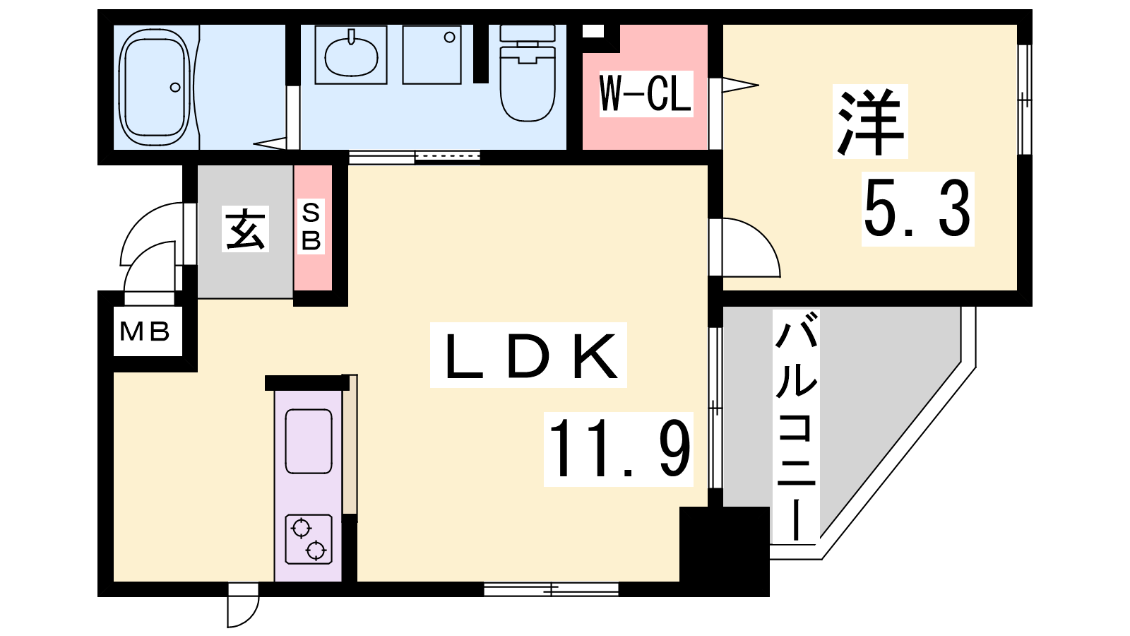 - LDK11.9帖、洋室5.3帖