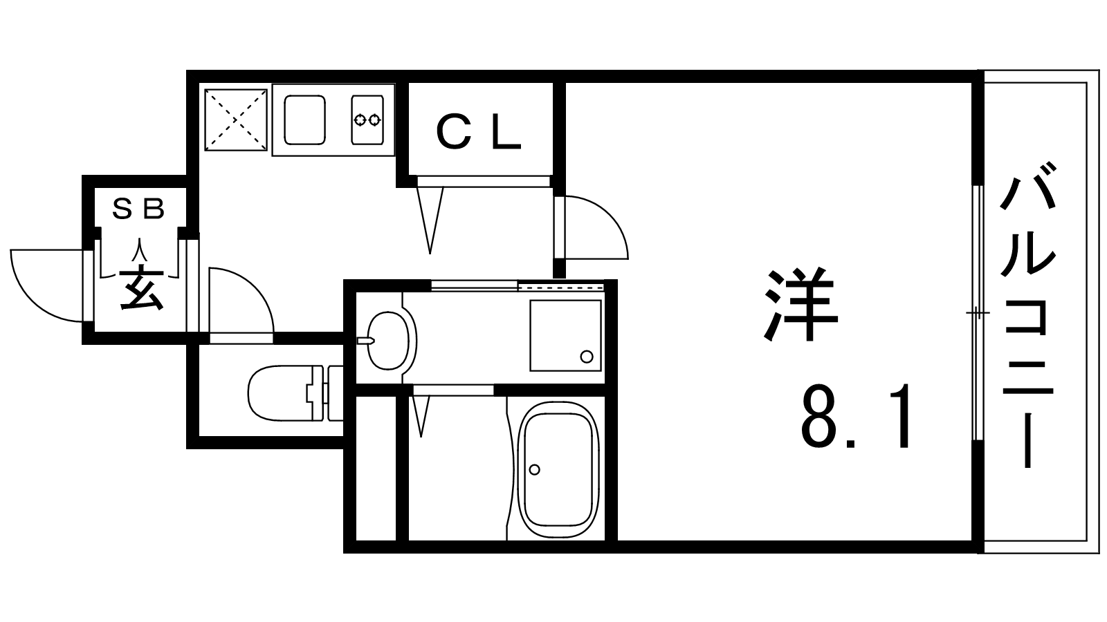 - K3帖、洋室8.1帖