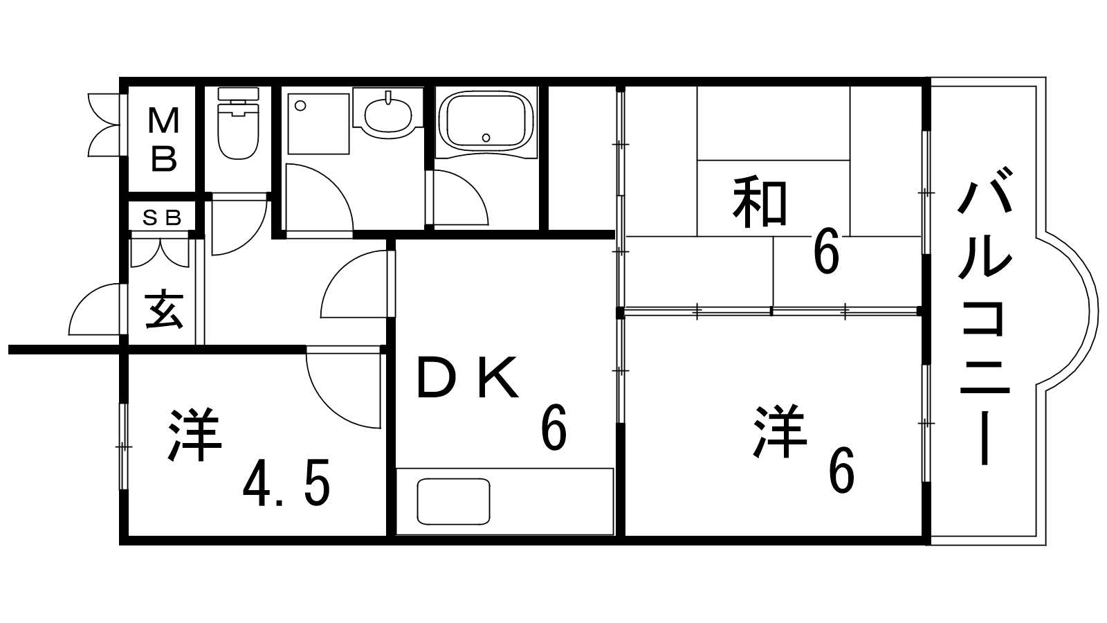 - DK6帖、和室6帖、洋室6帖、洋室4.5帖