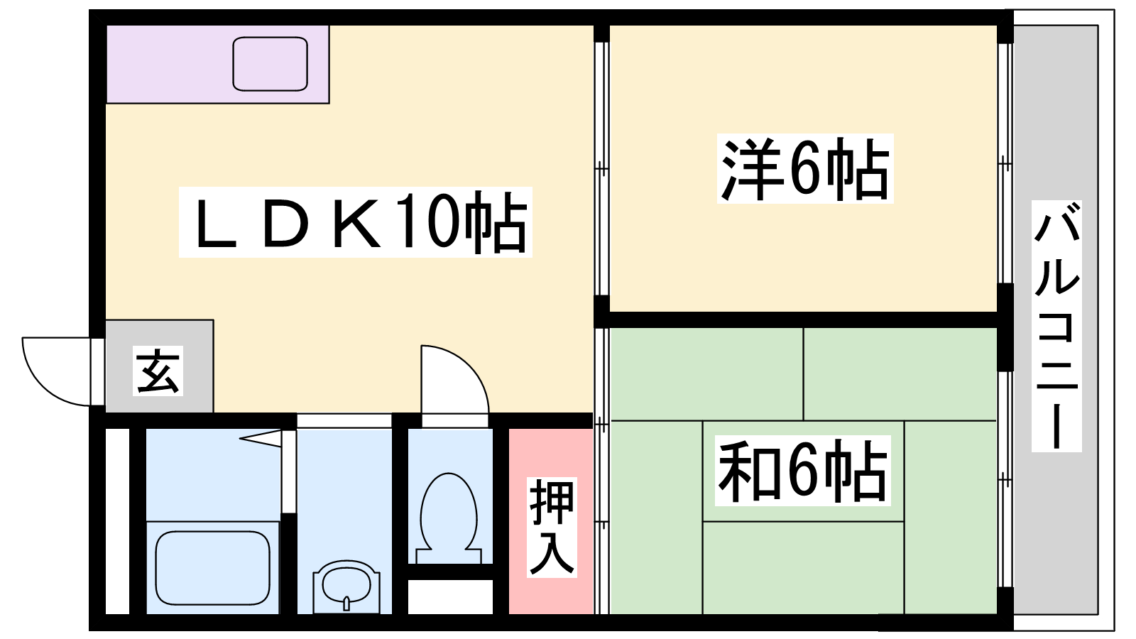 - LDK10帖、洋室6帖、和室6帖