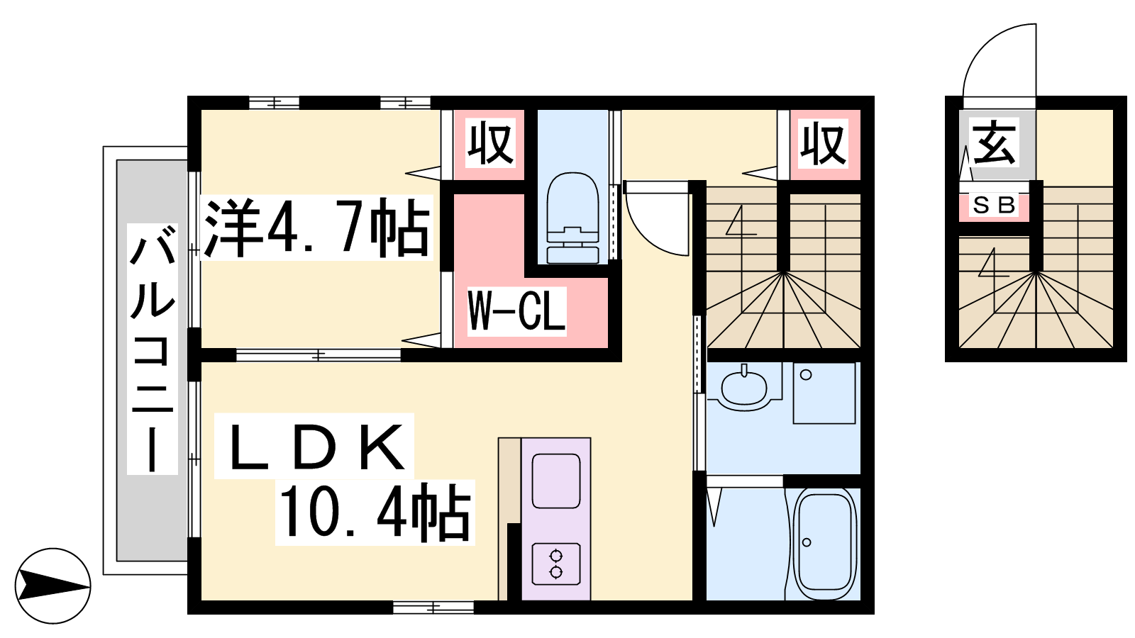 - LDK10.4帖、洋室4.7帖