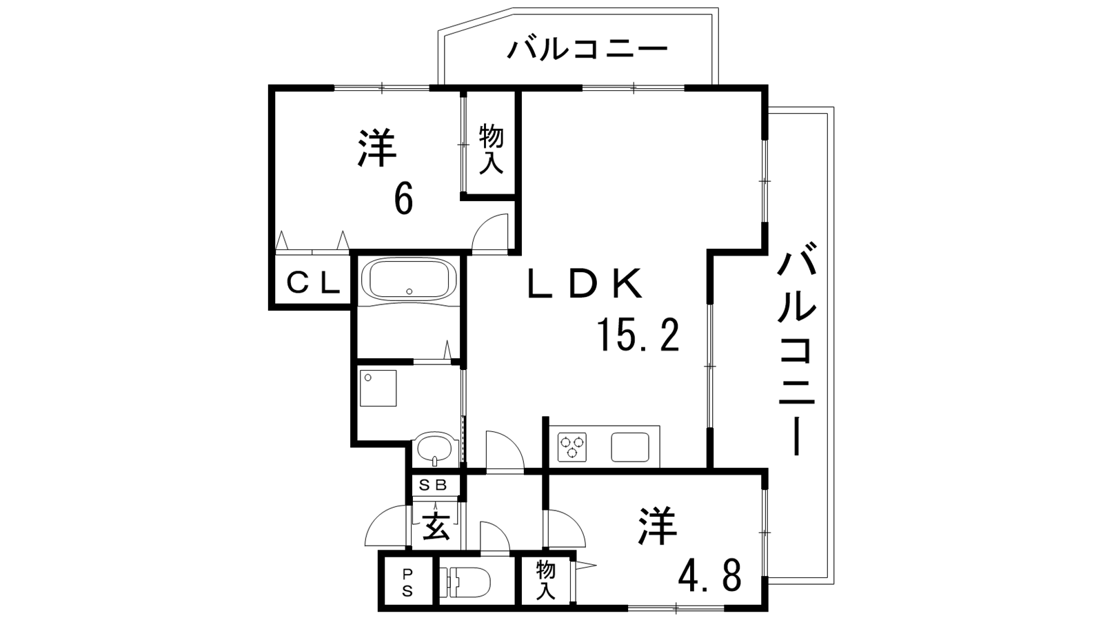 - LDK15.2帖、洋室6帖、洋室4.8帖
