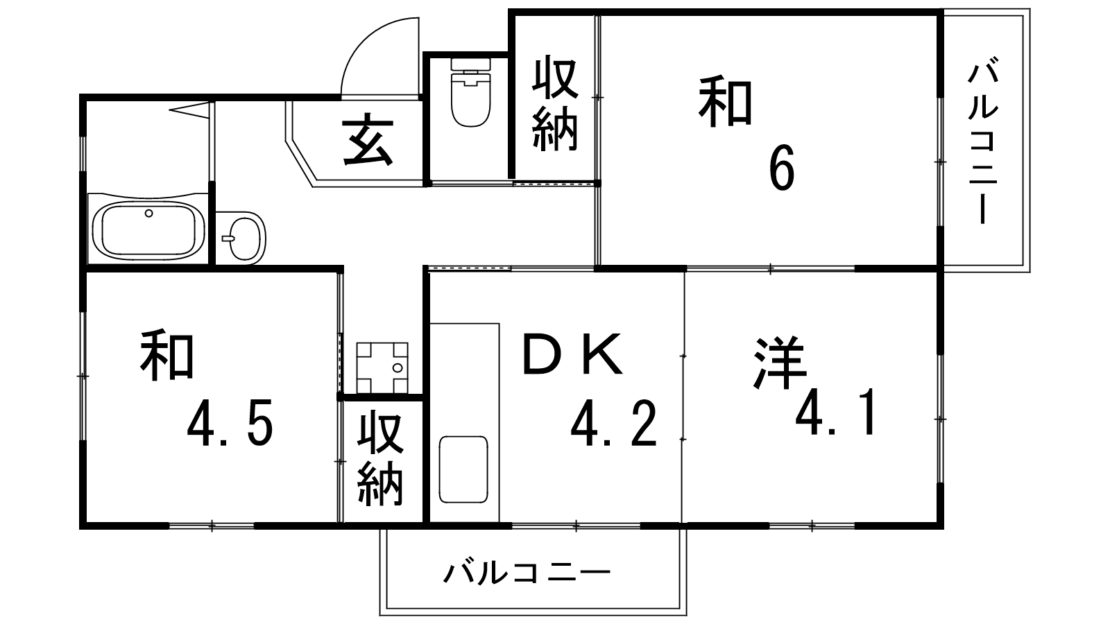 - K5.7帖、和室4.5帖、和室4.5帖、和室6帖