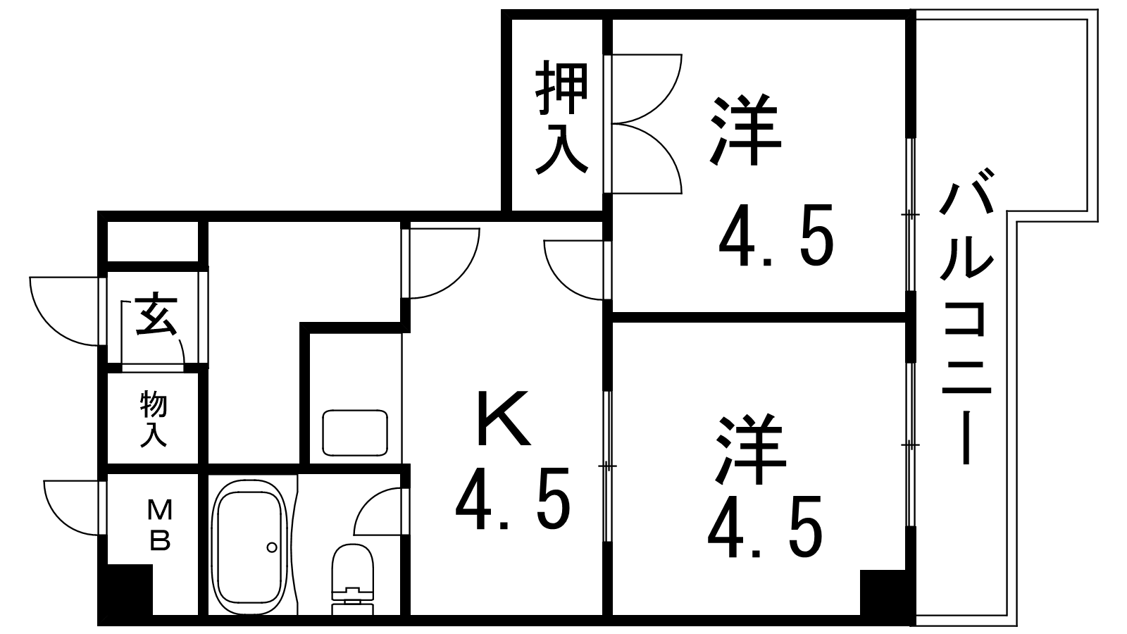 - K4.5帖、洋室4.5帖、洋室4.5帖