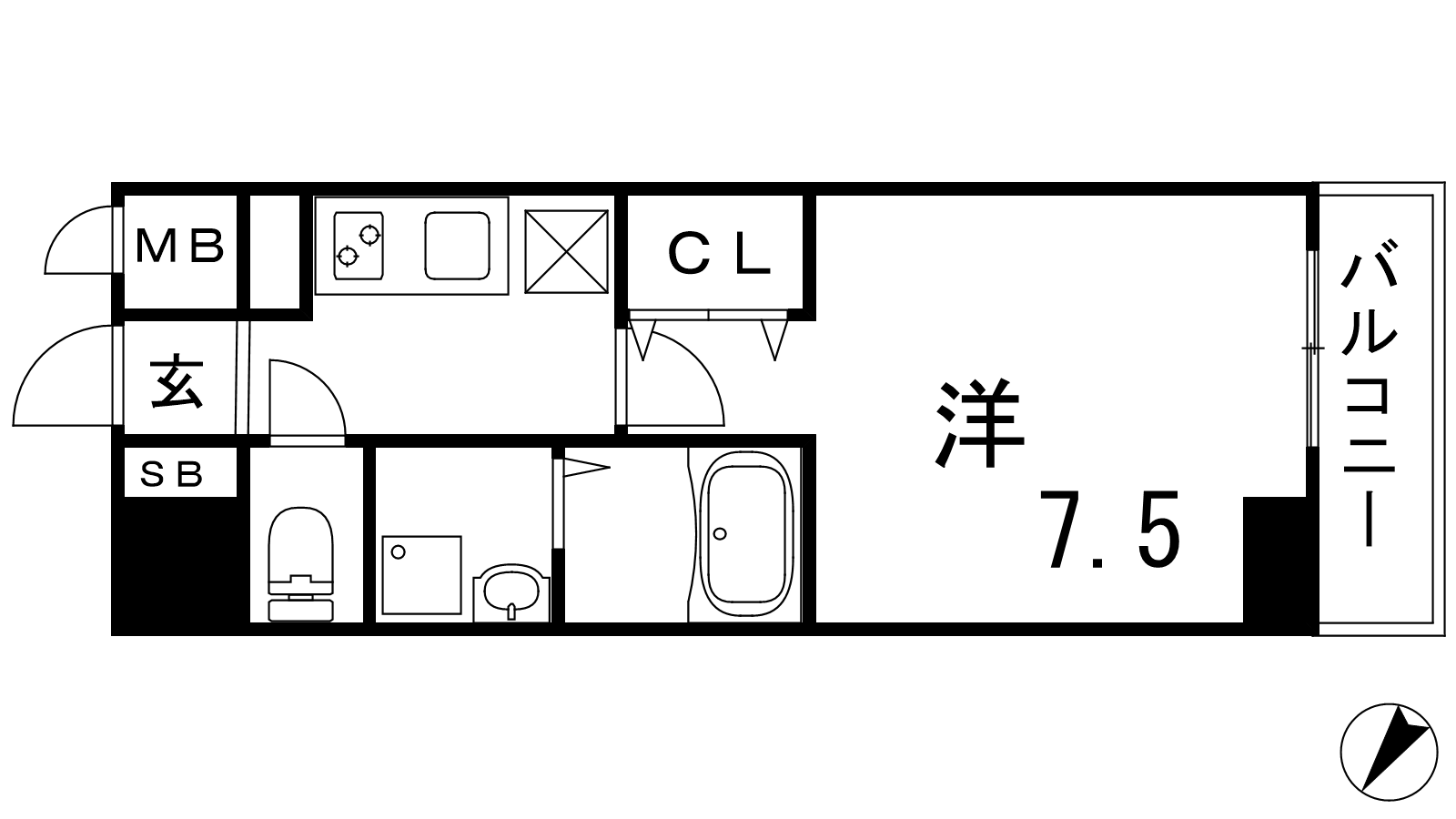 - K3帖、洋室7.5帖