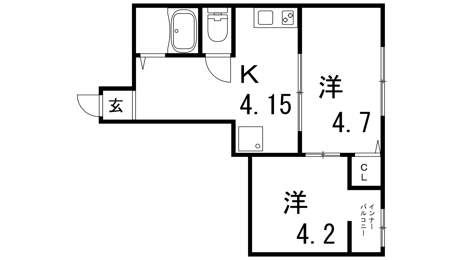 - 洋室4.2帖、洋室4.7帖、K4.15帖