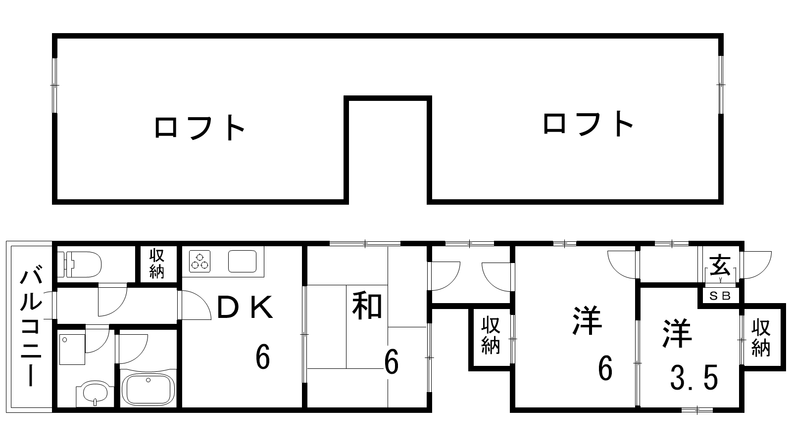 - DK6帖、洋室6帖、洋室3.5帖、和室6帖