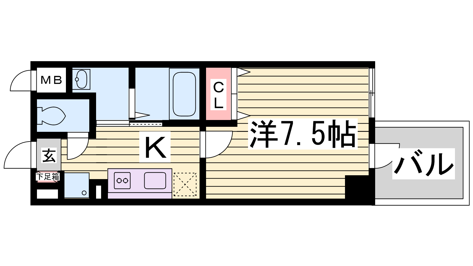 - K3帖、洋室7.5帖