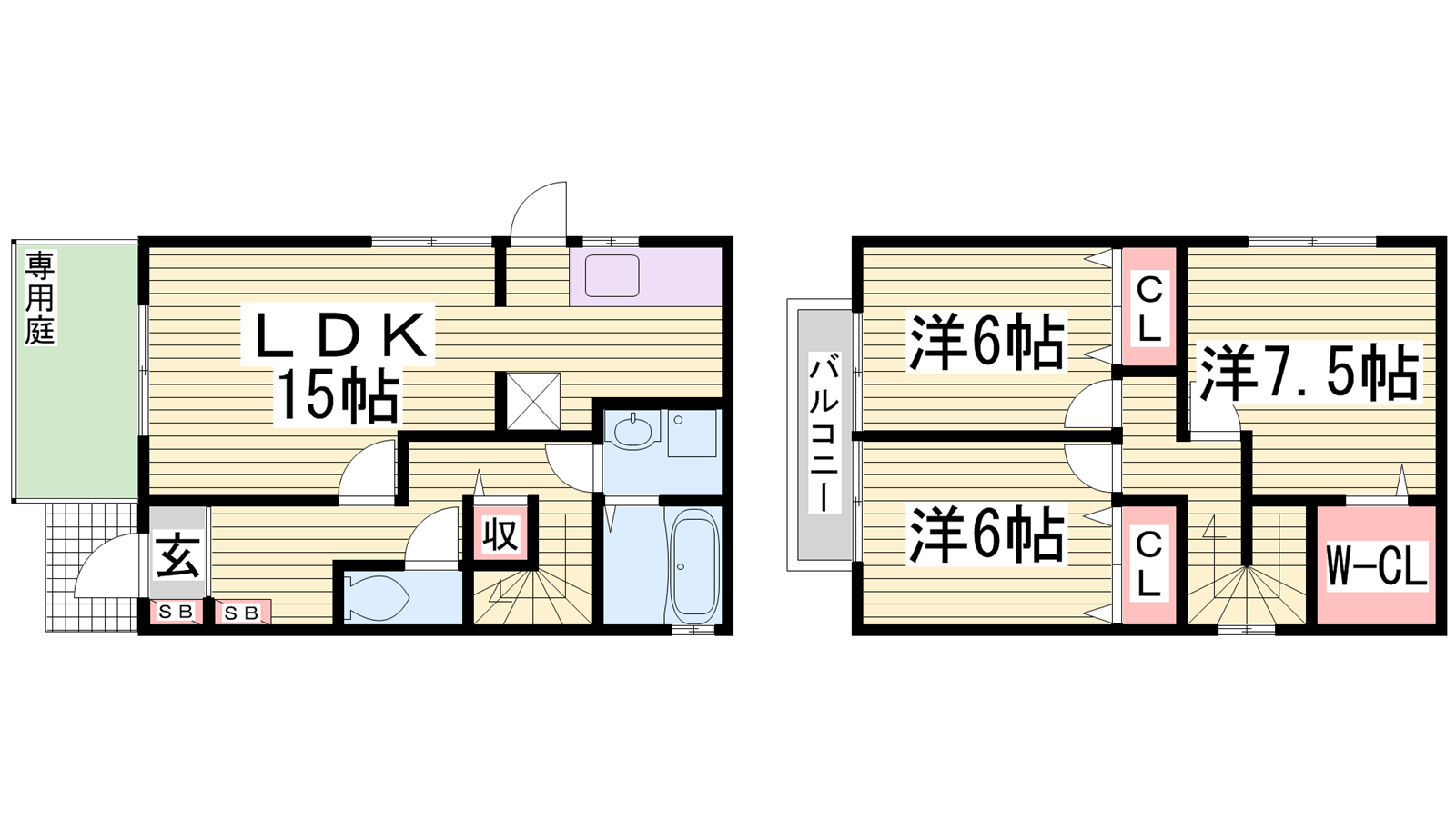 - LDK15帖、洋室7.5帖、洋室6帖、洋室6帖